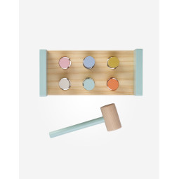 Este banco de madera es el complemento perfecto para el desarrollo de la coordinación y la habilidad motriz de tu hijo, mientras se divierte golpeando los cilindros con el martillo de juguete incluido. Fabricado con madera FSC, garantizando su procedencia sostenible y respetuosa con el medio ambiente.