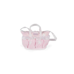 Fabricado en suave algodón rosa, su atractivo estampado de estrellas blancas le da un toque mágico, ideal para complementar cualquier sillita de muñeca.