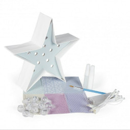 El kit incluye una base de lámpara, bombillas LED, papeles de colores, cola, pincel y cables. Todo lo que se necesita para dar rienda suelta a la creatividad y personalizar su lámpara.