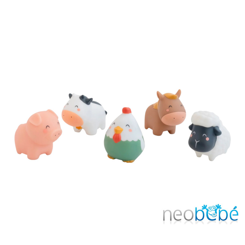 El set incluye una variedad de juguetes acuáticos con diseño de animales de granja, todos elaborados con materiales seguros y de alta calidad. Cada juguete está pensado para estimular la imaginación y el juego durante la hora del baño.