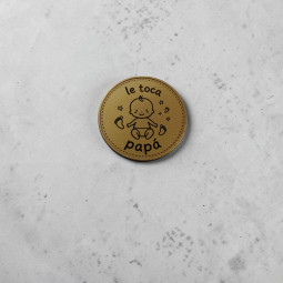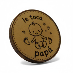En una cara dice "Le toca a Papá" y en la otra "Le toca a Mamá", haciendo que la decisión sea justa, divertida y sin discusiones.