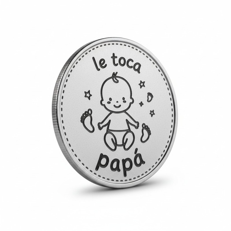 Es una moneda especial, diseñada con humor y practicidad, que te ayuda a decidir quién le toca hacer las tareas del bebé, como cambiarle el pañal, prepararle el biberón o ponerle a dormir.