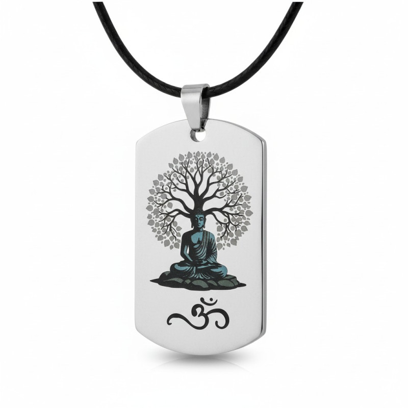 Este colgante tipo chapa militar de acero con Buda bajo el árbol grabado a láser en color es mucho más que un accesorio: representa paz interior, protección y equilibrio. Personalízalo con un nombre o palabra especial y conviértelo en un detalle único, espiritual y lleno de significado.