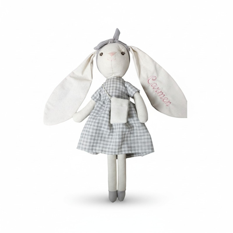 Esta Muñeca de trapo Conejita es un regalo ideal porque puedes personalizarla bordando el nombre del peque para hacerla muy especial. Es suave y blandita.
